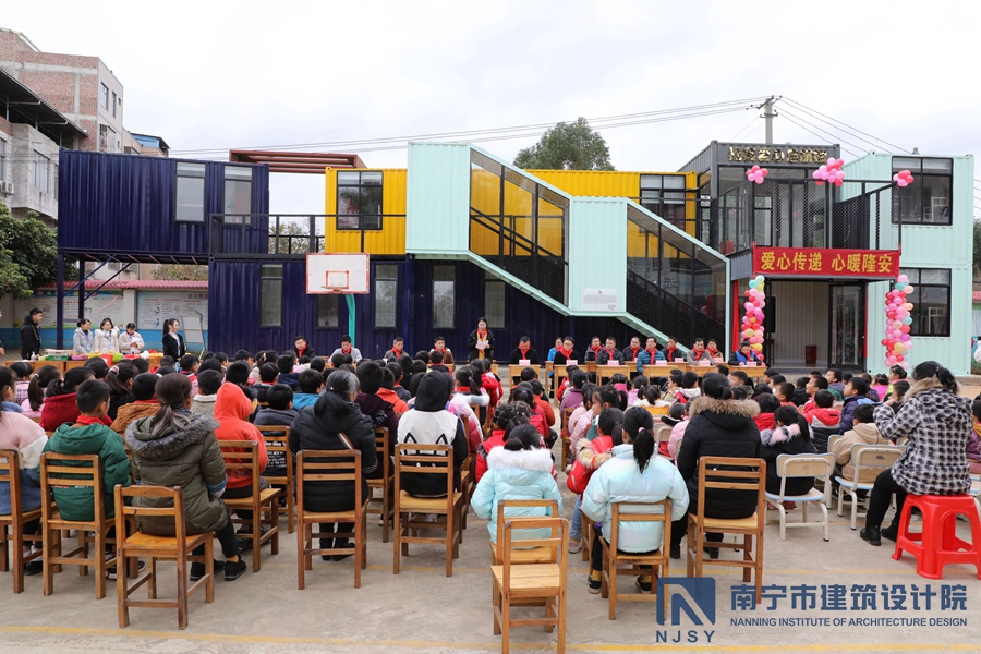 12月17日,寒風瑟瑟,但在隆安縣古潭鄉(xiāng)育英村小學的校園內(nèi)卻是暖意融融,歡樂不斷。當天上午,由我院無償設計的育英村小學宿舍樓“會飛的盒子008號”正式揭牌啟用,可為路途遙遠的學生們提供一個溫馨的居所。